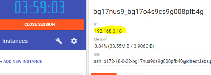You should be able to access the website by clicking the port number link at the top of the interface. Sometimes they do not show up, but you can create the URL manually. You need the part marked with yellow below. It is added into the URL below. When you get it right, it should show the “Welcome to Nginx!” message from the website.